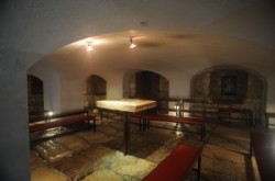 A kopt kolostor kapujának bal oldalán oszlop áll. A hagyomány szerint itt roskadt össze Jézus harmadszor a kereszt terhe alatt. Az oszloppal szemben a koptok temploma, ahonnan egy kis kápolnán keresztül meredek, síkos lépcsőn lejuthatunk Helena medencéjéhez.