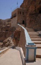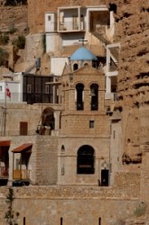 A Szent Charalamposz görögkeleti kolostor falán kőbe vésett kereszt látható.
