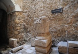 A kopt kolostor kapujának bal oldalán oszlop áll. A hagyomány szerint itt roskadt össze Jézus harmadszor a kereszt terhe alatt. Az oszloppal szemben a koptok temploma, ahonnan egy kis kápolnán keresztül meredek, síkos lépcsőn lejuthatunk Helena medencéjéhez.