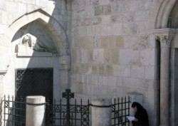 Keresztút hatodik állomás, VI. stáció. (Church of St. Veronica)A Szent Veronika-templom azon a helyen áll, ahol a keresztény hagyomány szerint Veronika letörölte a keresztet vivő Jézus véres és verejtékes arcát..